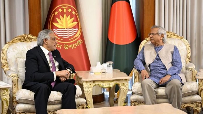 পাকিস্তানের উপপ্রধানমন্ত্রী ও পররাষ্ট্রমন্ত্রী মোহাম্মদ ইসহাক দার রোববার ঢাকায় রাষ্ট্রীয় অতিথি ভবন যমুনায় প্রধান উপদেষ্টা অধ্যাপক মুহাম্মদ ইউনূসের সঙ্গে বৈঠক করেছেন। বৈঠকে দুই নেতা দ্বিপক্ষীয় সম্পর্ক জোরদার, বাণিজ্য সম্প্রসারণ, শিক্ষা ও সাংস্কৃতিক আদান-প্রদান বৃদ্ধি, তরুণ প্রজন্মের পারস্পরিক যোগাযোগ এবং সার্কের মাধ্যমে আঞ্চলিক সহযোগিতা পুনরুজ্জীবনের ওপর গুরুত্বারোপ করেন।