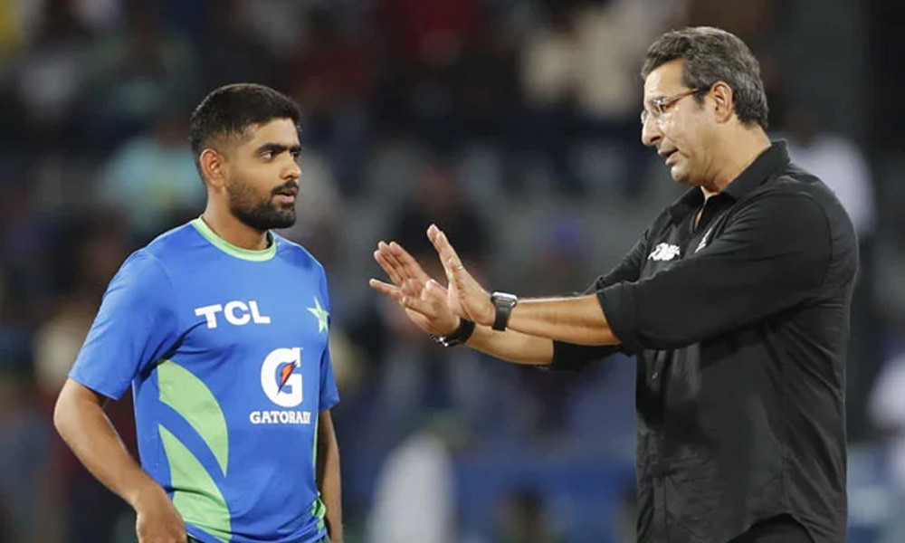 বাবর আজমের সঙ্গে ওয়াসিম আকরাম। ছবি : এএফপি