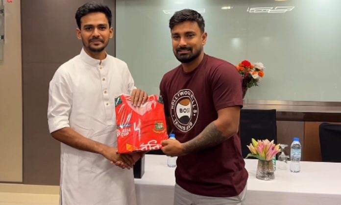 ক্রীড়া উপদেষ্টার সঙ্গে লিটন দাস। ছবি : ভিডিও থেকে নেওয়া