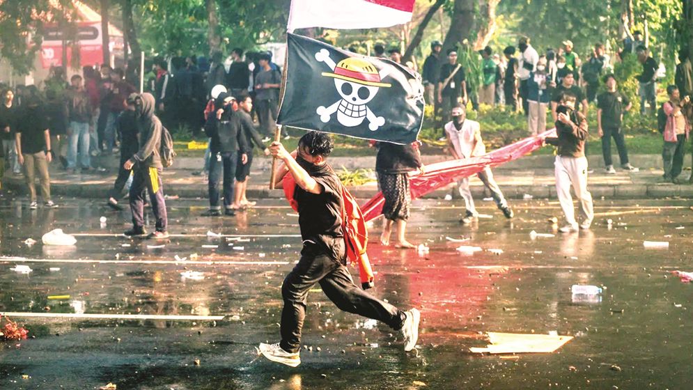 মাত্র কদিন আগে, জেন-জিদের আন্দোলনে টালমাটাল হয়ে পড়েছিল নেপাল। দুদিনের (৮ ও ৯ সেপ্টেম্বর) আন্দোলনের তীব্রতায় পতন ঘটে সরকারের। চারদিকে জ্বলতে থাকে সরকারি-বেসরকারি অবকাঠামো। সেসময় নেপালের সিংহদরবারের আগুনের লেলিহান শিখার মাঝেই নজর কেড়েছিল এক অদ্ভুত দৃশ্য। সরকারি ভবনের সামনে উড়তে দেখা যায়, জাপানি শিল্পী এইচিহিরো ওডার সৃষ্ট মাঙ্গা সিরিজ ওয়ান পিসের পাইরেট (জলদস্যু) পতাকা, যার কালো ব্যানারে খড়ের টুপি পরা ‘মাথার খুলি’। জল্লি রজার নামের এই কার্টুনিশ খুলি শুধু ফ্যানডমের প্রতীক নয়; জাপান, কোরিয়া, ফিলিপাইন, নেপালসহ এশিয়ার বিভিন্ন দেশে দুর্নীতি এবং সরকারি অব্যবস্থার বিরুদ্ধে জেন-জি প্রজন্মের বিক্ষোভের প্রতীক হয়ে উঠেছে।