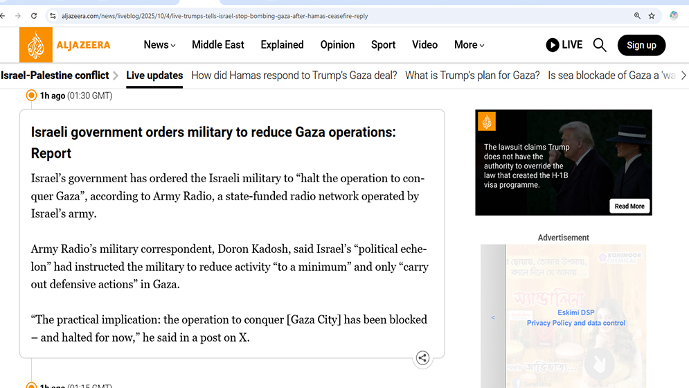 এ বিষয়ে আর্মি রেডিওর সংবাদকর্মী ডরোন কাদোস বলেন, ইসরাইলের ‘রাজনৈতিক মহল’ গাজায় চলা সামরিক কার্যক্রম ‘সর্বনিম্ন’ পর্যায়ে নামিয়ে আনতে এবং শুধু ‘প্রতিরক্ষামূলক পদক্ষেপ’ নিতে সেনাবাহিনীকে নির্দেশ দিয়েছে।