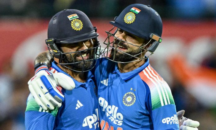 জয়ের পর হাসিমুখে রোহিত-কোহলি। ছবি : এএফপি