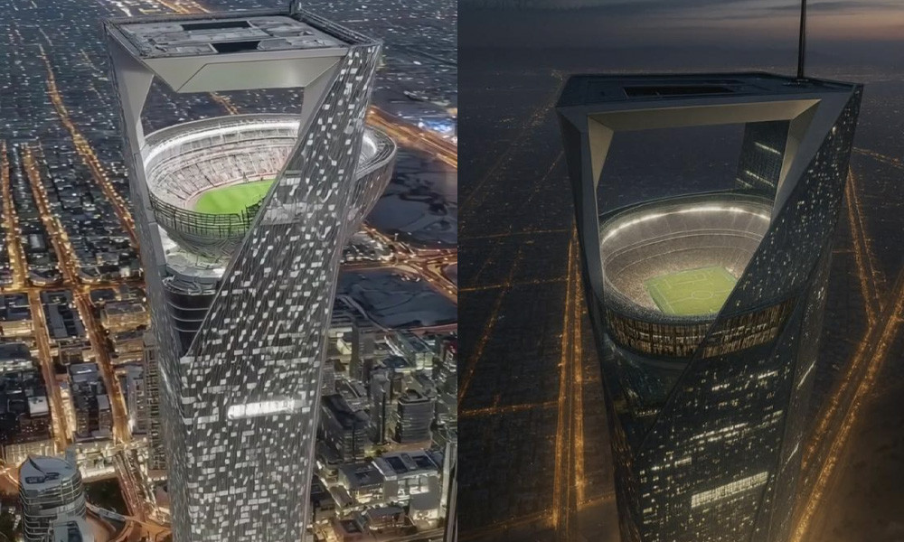 ভিডিওটিতে দেখা যায়, সুউচ্চ এক ভবনের চূড়ায় আলোকোজ্জ্বল ফুটবল স্টেডিয়াম; যা দেখে অনেকেই ধারণা করেছিলেন এটি সৌদি আরবের ভবিষ্যৎ প্রকল্প ‘দ্য লাইন’-এর অংশ হতে পারে।