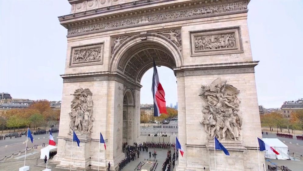রাজধানী প্যারিসে Arc de Triomphe (আর্ক দ্য ত্রিওঁফ)-এর নিচে অবস্থিত অজ্ঞাত সৈনিকের সমাধিতে পুষ্পস্তবক অর্পণ করে শ্রদ্ধা জানান ফরাসি প্রেসিডেন্ট এমানুয়েল ম্যাখোঁ। স্থানীয় সময় সকাল ১১টায় সারাদেশে দুই মিনিট নীরবতা পালন করা হয়— সেই মুহূর্তটির স্মরণে, যখন ১৯১৮ সালের ১১ নভেম্বর সকাল ১১টায় থেমে গিয়েছিল যুদ্ধের কামানের গর্জন।