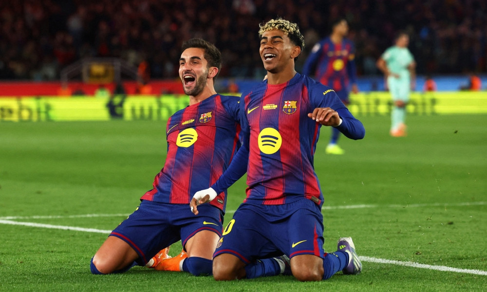 ফেররান তোরেসের সঙ্গে গোল উদযাপন করছেন লামিনে ইয়ামাল। ছবি : রয়টার্স