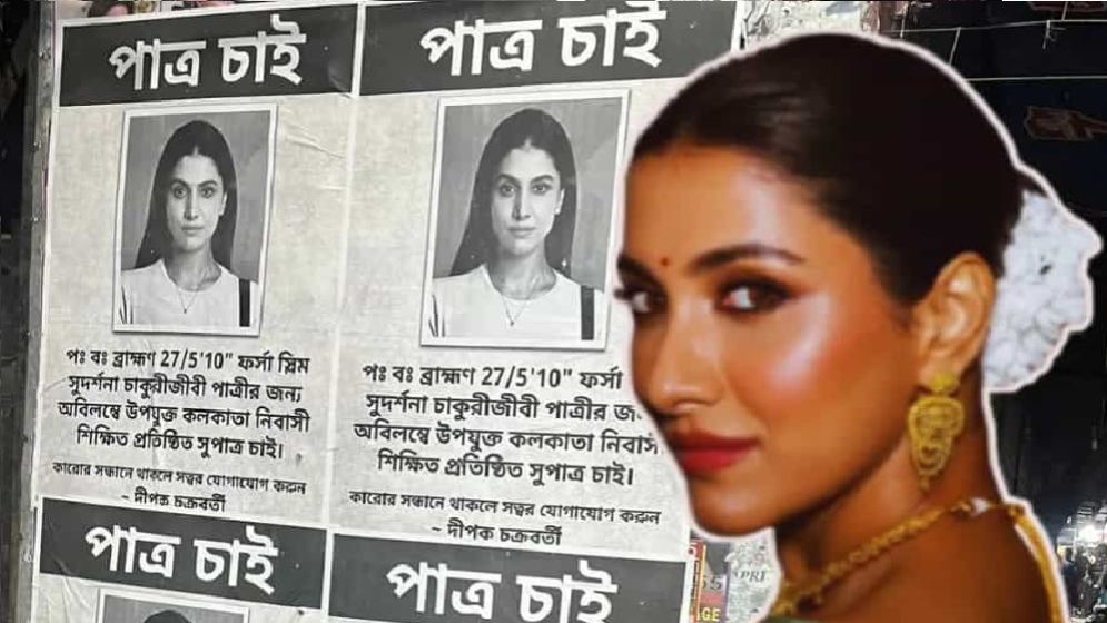 এ মুহূর্তে টালিউড অভিনেত্রী রুক্মিণী মৈত্রের ছবিসহ ‘পাত্র চাই’ লেখা একাধিক পোস্টার কলকাতা শহরের বিভিন্ন অলিগলিতে ঝুলছে। হঠাৎ এমন বিজ্ঞপ্তি দেখে পথচারীদের মধ্যে কৌতূহল তৈরি হয়েছে। সেই সাদাকালো পোস্টারে বড় করে লেখা— ‘পাত্র চাই’, সঙ্গে পাত্রের যোগ্যতার বিস্তারিত বিবরণও দেওয়া হয়েছে। প্রথমে অনেকেই ভেবেছিলেন, রুক্মিণীর ব্যক্তিগত জীবনের বিষয়ে এটি কোনো ঘোষণা। কিন্তু পোস্টারের মালিক হিসেবে উল্লেখ করা হয়েছে দীপক চক্রবর্তীর নাম!