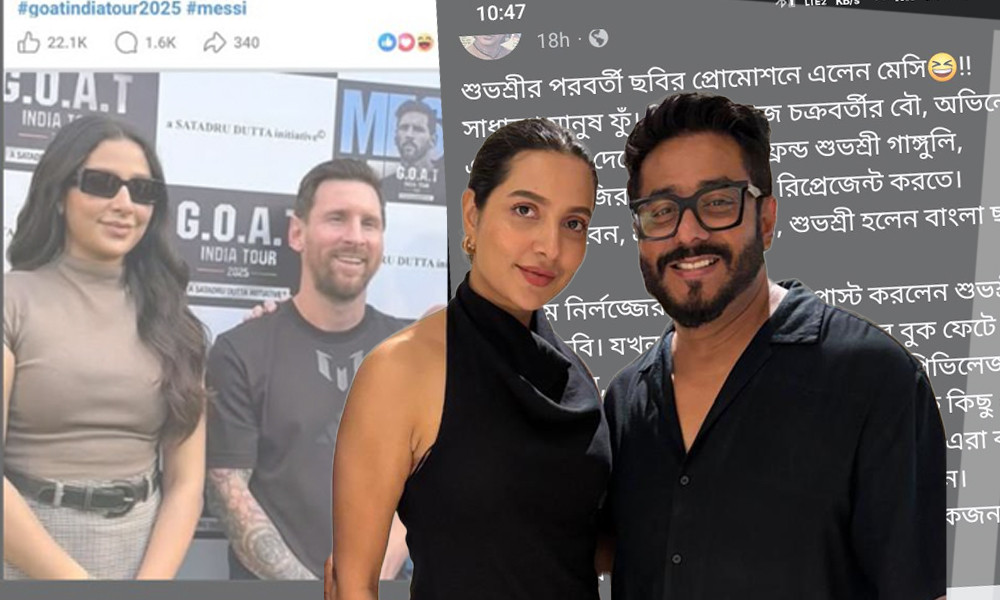 রাজ আরও লেখেন, “শুভশ্রী অভিনেত্রী বলে কি তিনি মেসির ভক্ত হতে পারেন না? একজন মানুষের একাধিক পরিচয় থাকে—তিনি মা, স্ত্রী, অভিনেত্রী, আবার একই সঙ্গে একজন ভক্তও। কিন্তু পরিচিত মুখ বলেই তার শরীর, পরিবার, সম্পর্ক—সবকিছু টার্গেট করা হচ্ছে।