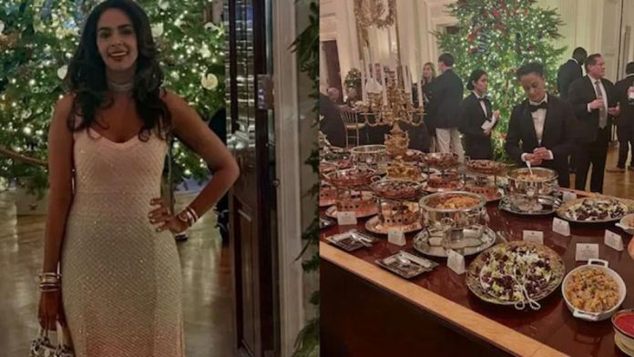 সামাজিক মাধ্যমে শেয়ার করা পোস্টে অভিনেত্রীকে দেখা যায়, হোয়াইট হাউসের প্রবেশদ্বারের সামনে দাঁড়িয়ে আছেন মল্লিকা শেরওয়াত। আরেক ছবিতে সন্ধ্যার আয়োজনে ফার জ্যাকেট ও গোলাপি পোশাকে ধরা দেন তিনি। শুধু ছবি নয়, অতিথিদের উদ্দেশে মার্কিন প্রেসিডেন্ট ডোনাল্ড ট্রাম্পের দেওয়া ভাষণের একটি ভিডিও শেয়ার করে নিয়েছেন মল্লিকা। সেখানে অভিনেত্রী লিখেছেন, হোয়াইট হাউসের ক্রিসমাস ডিনারে আমন্ত্রণ পাওয়া সম্পূর্ণভাবেই অবিশ্বাস্য এক অভিজ্ঞতা। আমি কৃতজ্ঞ।