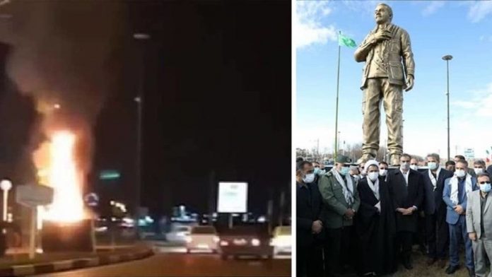 ইরানের ফার্স প্রদেশে ইসলামিক বিপ্লবী গার্ডের কুদস ফোর্সের সাবেক প্রধান কাসেম সোলাইমানির ভাস্কর্য ভেঙে ফেলেছেন বিক্ষোভকারীরা। সামাজিক যোগাযোগমাধ্যমে ছড়িয়ে পড়া ভিডিওতে দেখা যায়, চলমান বিক্ষোভের ১১তম দিনে বুধবার (৭ জানুয়ারি) ফার্স প্রদেশে বিক্ষোভকারীরা ভাস্কর্যটি ভাঙচুর করেন।