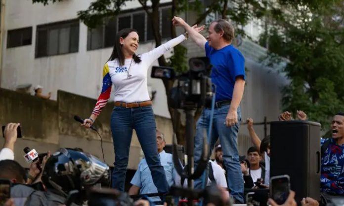 মারিয়া কোরিনা মাচাদোর সঙ্গে হুয়ান পাবলো গুয়ানিপা। ফাইল ছবি : রয়টার্স