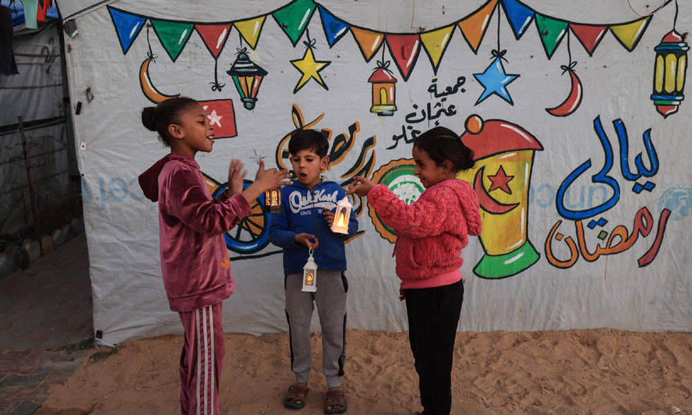 গাজার মধ্যাঞ্চলে দেইর আল-বালাহ সমুদ্র সৈকতে ফিলিস্তিনি শিল্পী ইয়াজিদ আবু জারাদ বালুর ওপর আরবি ক্যালিগ্রাফিতে ‘স্বাগতম রমজান’ লিখে উৎসবের আমেজ ছড়িয়েছেন। পাশের তাবু শিবিরের শিশুরা তা কৌতূহলভরে দেখেছে। দুই বছরের বেশি সময় ধরে চলা সংঘাতে গাজার প্রায় ২২ লাখ মানুষ অন্তত একবার বাস্তুচ্যুত হয়েছেন।