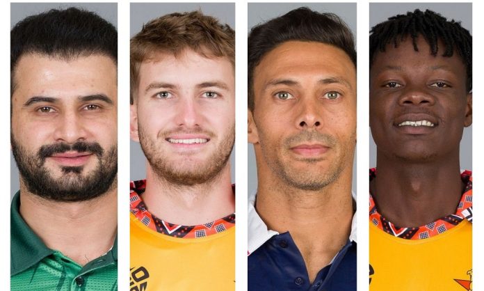 সাহিবজাদা ফারহান, ব্রায়ান বেনেট, শ্যাডলি ফন শালকভিক ও ব্লেসিং মুজারাবানি (বাঁ থেকে)। ছবি: আইসিসি