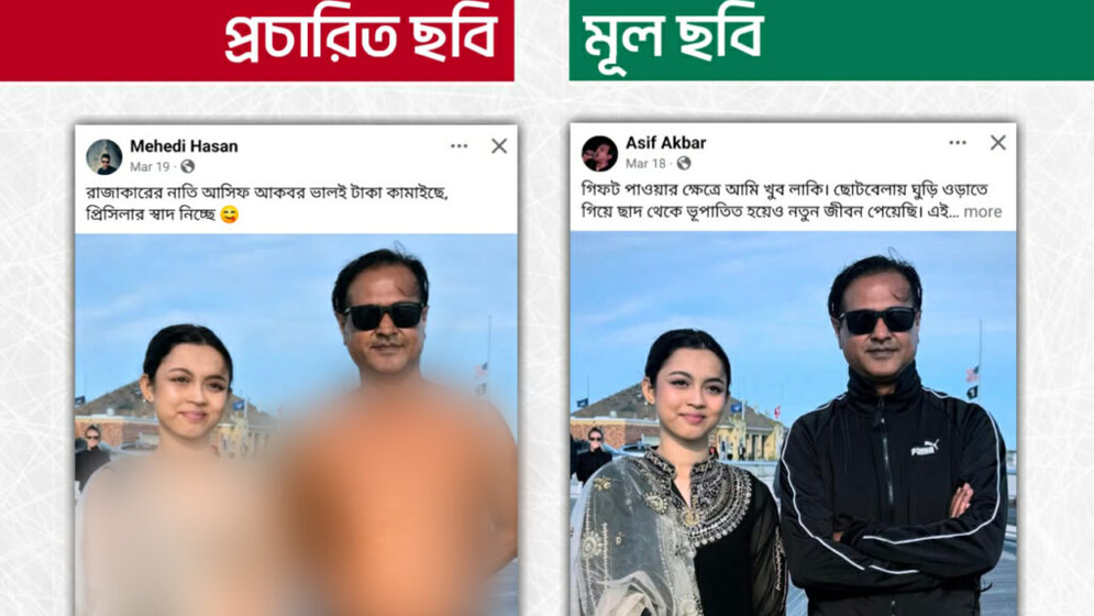 প্রতিবেদনে সংস্থাটি উল্লেখ করে, রিউমর স্ক্যানার টিমের অনুসন্ধানে প্রিসিলা ফাতেমা ও আসিফ আকবরের প্রচারিত ছবিটি আসল নয় বলে নিশ্চিত হয়েছে তারা। প্রকৃতপক্ষে এআই বা কৃত্রিম বুদ্ধিমত্তার সহায়তায় তাদের ভিন্ন একটি ছবিকে সম্পাদনা করে আলোচিত এই ছবিটি তৈরি করা হয়েছে বলে প্রতিবেদনে জানানো হয়।