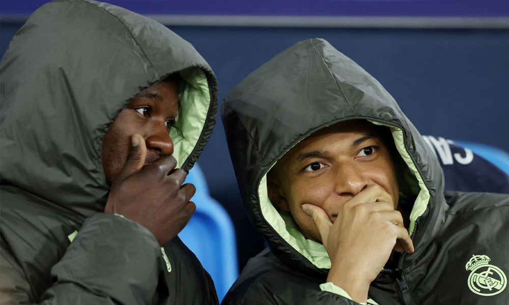 রিয়ালের ফরাসি তারকা এদুয়ার্দো কামাভিঙ্গা ও কিলিয়ান এমবাপ্পে। ছবি : রয়টার্স