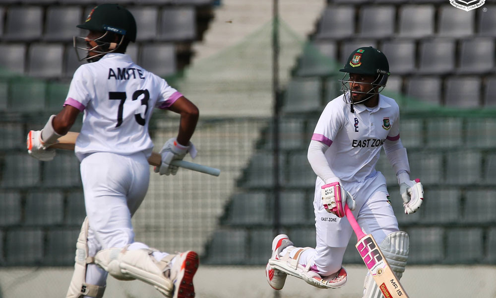 এর আগে প্রথম ইনিংসে তিন ফিফটিতে ৩০৭ রান করেছিল মধ্যাঞ্চল। বিপরীতে একমাত্র ইনিংসে ৪৬৩ রান করেন পূর্বাঞ্চল।