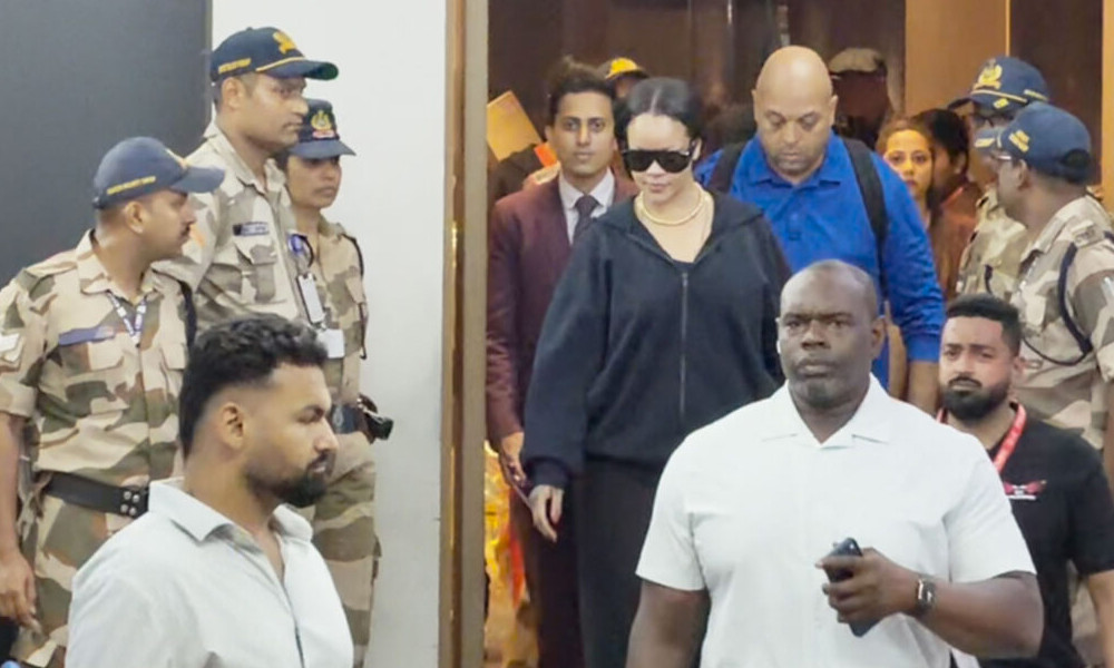 বিমানবন্দরে রিহানাকে কালো পোশাক ও কালো সানগ্লাসে দেখা যায়।