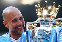 প্রিমিয়ার লিগ ট্রফি হাতে পেপ গার্দিওলা। ছবি : রয়টার্স